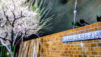 街灯のライトアップで、映える正門の梅。まだまだ寒さが続きます。