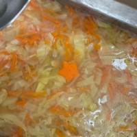 今日は、ラッキー人参スープの献立でした。3クラスのスープの食缶にだけ、星型の人参...