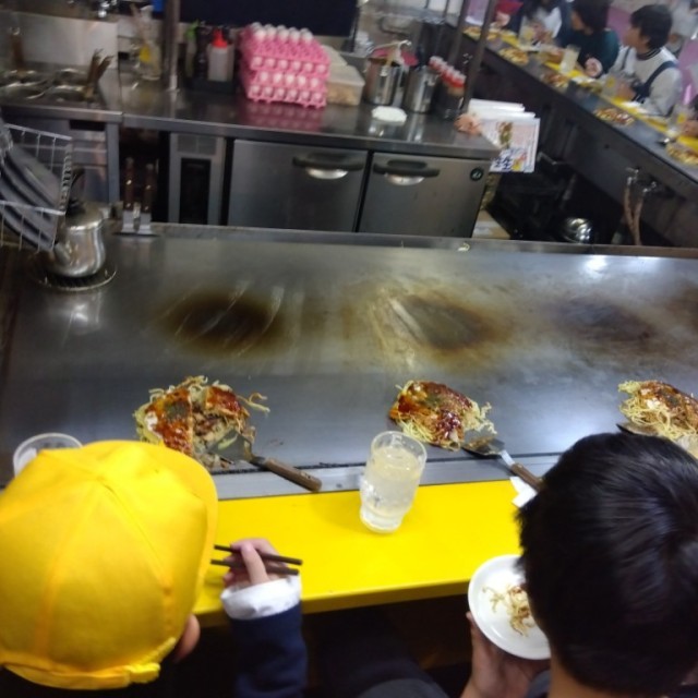 広島駅前の、「ひろしまお好み物語」で、本場の広島焼きをいただきました。5店舗の協力で松小っ子の準備をしてくださり、子どもたちも「おいし~!」「最高!!」「ヤミー!」と嬉しそうに食べていました。広島カープファンの店主さん、楽しい食事時間をありがとーございました。
