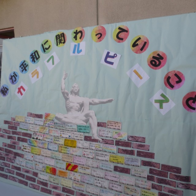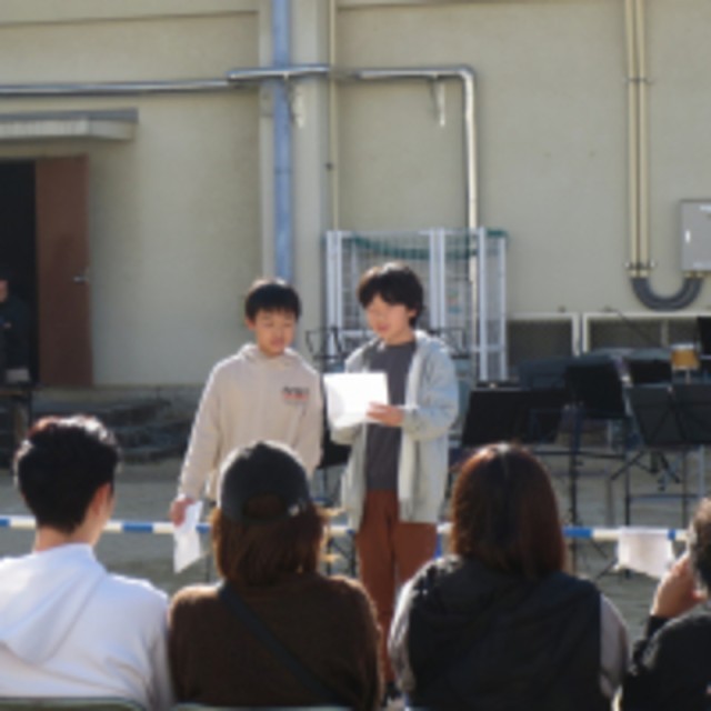 地域教育協議会会長のごあいさつの後、校区小中学校代表が学んできた平和学習についての報告をして、松中吹奏楽部による演奏がオープニングを飾ってくれました。
