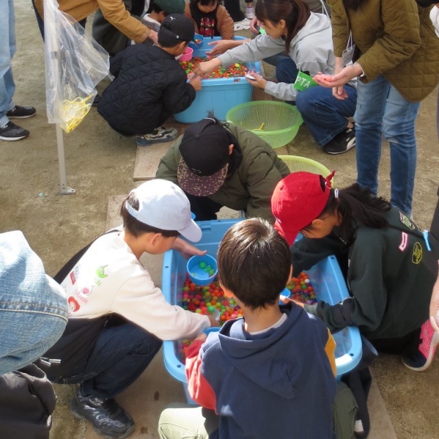 体験・展示コーナーでは、関係各団体の工夫を凝らした出店に、参加する大人も子どもも楽しんでいた様子です。本校PTAでも、スーパーボールすくいとストラックアウトを出店し、たくさんの子どもたちを笑顔にすることができました!