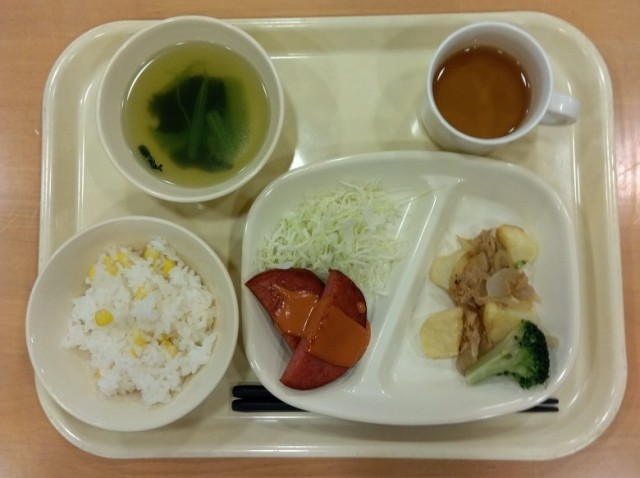 朝の集いで体を動かした後は、待ちに待った朝食の時間です。テーブルにはバランスのとれた食事が並びました。モリモリ食べてエネルギーを満タンにします!