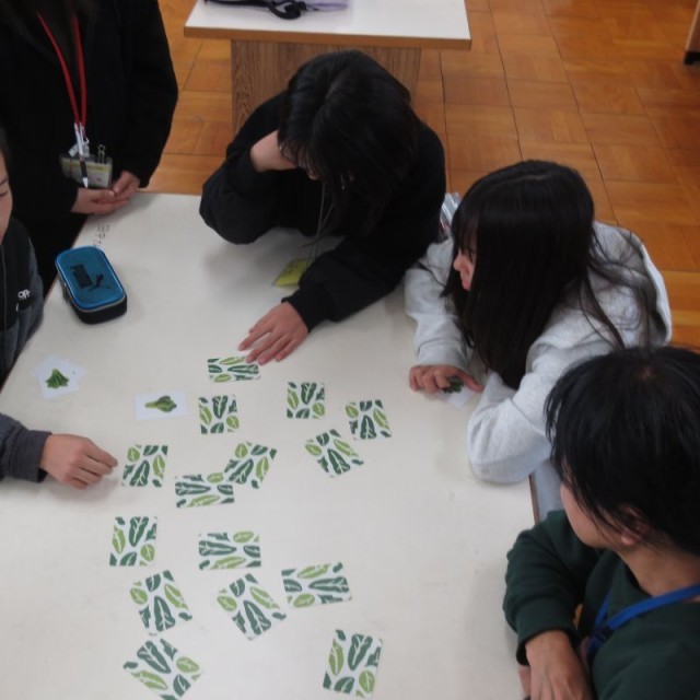 4,5枚めの写真は葉野菜の神経衰弱で、とても面白く、難しいゲームでした。馴染みのある、ほうれん草、みず菜、小松菜、チンゲン菜、みつ葉、菊菜から、モロヘイヤ、わさび菜、パクチー、イタリアンパセリまで。みなさん、区別つきますか?
