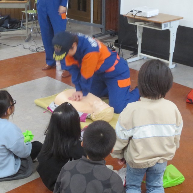 松原市消防本部の方々に来ていただき、松小っ子3年生が、災害や消防団の役割のお話、心肺蘇生体験、煙体験、放水体験をおこないました。子どもたちはどの体験も真剣にとりくみ、火事の怖さや、命の大切さを考えることができたと思います。