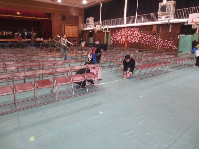 今日は、6年生が登校して、入学式の準備をしてくれました。