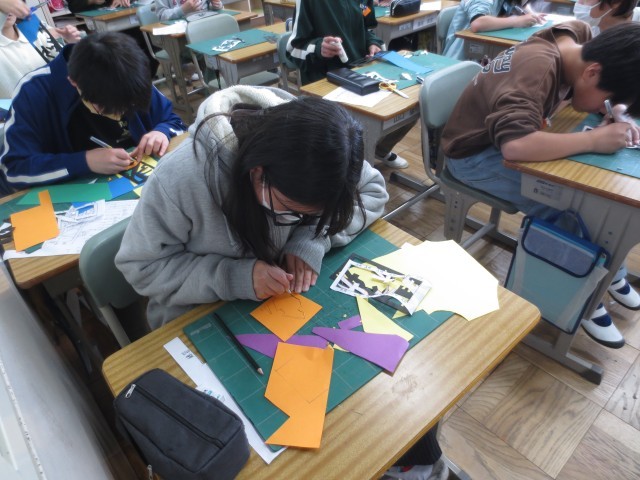 6年生は、図工で自分の名前をカッターで切り取り、作品を作っていました。