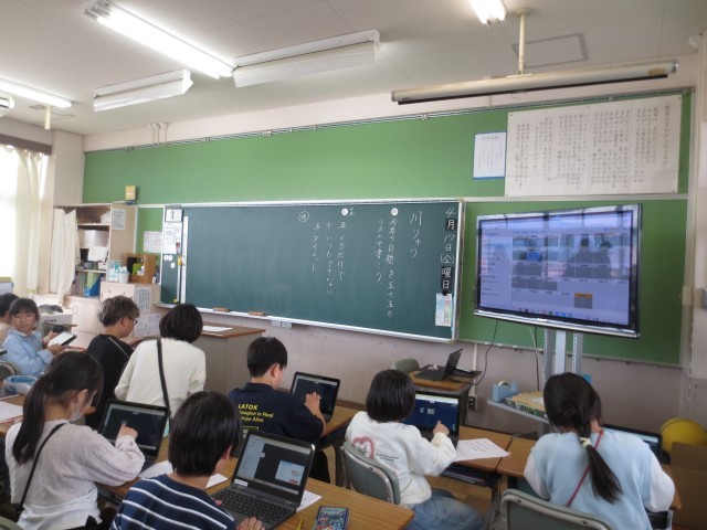 4年生は、川柳を作って、タブレットで提出していました。