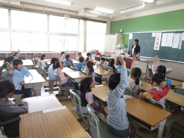 元気よく手をあげたり、一生懸命ひらがなを書いたりしていました。