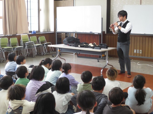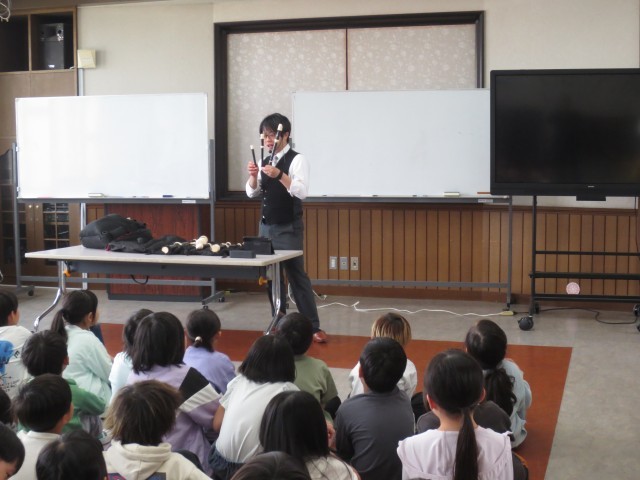 今日は、プロのリコーダー演奏家に来てもらって、実際の演奏を聴いたり、色々なリコーダーを見せてもらったりしました。