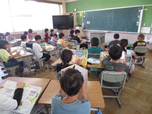 松原小学校では、毎週水曜日の朝の時間に「朝読書」をしています。