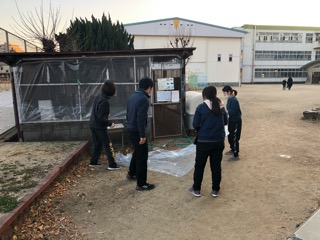 かわいがっているうさぎたちを雨風から守るために飼育小屋に巻いていたビニールが古くなり、穴が開いたり、ちぎれていたりしたため、飼育担当の先生と子どもたちが放課後にビニールを張り直してくれました。リニューアルされた小屋の中で元気に過ごしてほしいと思っています。
