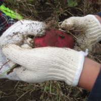 松小っ子1年生が校内畑で芋掘りをしました。鮮やかな紫色の皮のさつまいもがたくさん...