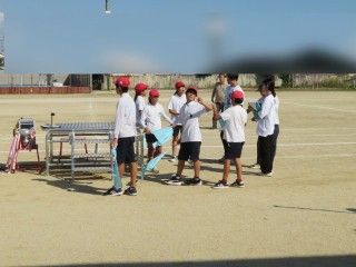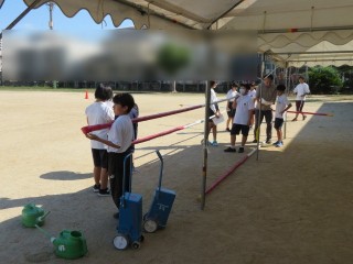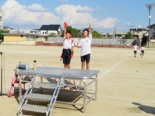 放送や朝礼台でセリフを言う係から、体力勝負?の準備係まで、運動会を運営するには高学年の力が必要です。