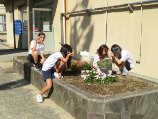 係打ち合わせ中、友だちを待っていた5年生数名が、なんと自主的に花壇の雑草抜きをしてくれました!(ありがとう!)