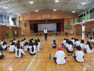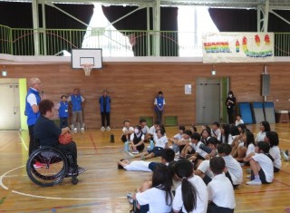 講師の先生として、シドニー五輪車いすバスケットボール主将を務められた根木慎志(ねぎ しんじ)さんをお招きし、華麗なプレーを披露いただくとともに、車いすの扱い方だけでなく仲間を大切にすることや友だちの思いを知ろうとすることなど、今後の生き方について大切なことを沢山教えていただきました。