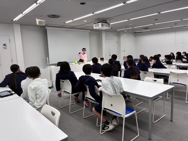 グループごとに見学のクラスと液体窒素の実験などに参加するクラスに分かれて見学です。