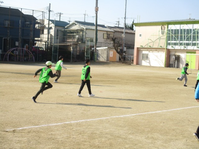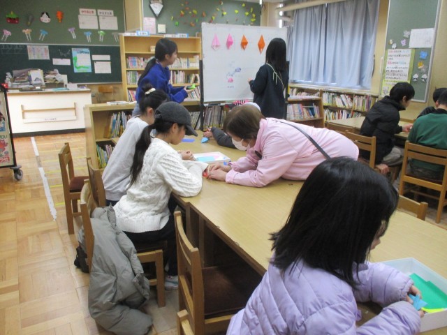 運動場でサッカーとドッジボール、体育館で大なわ、図書室でおりがみ教室をしました。