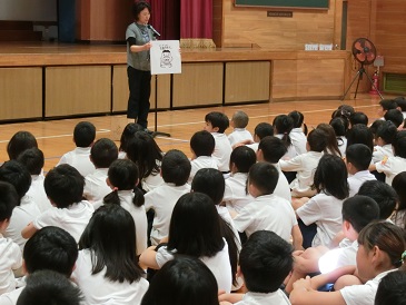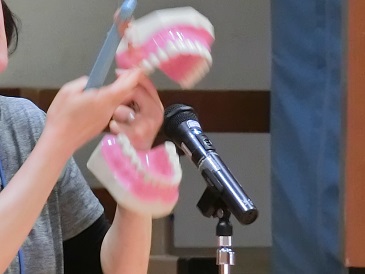 6月4日の虫歯予防デーに向けて、6月3日(月)の朝会では保健室の先生から、歯の大切さと虫歯予防のための正しい歯磨きの仕方を、教えてもらいました。今週と来週に分かれて、学校でも給食後に歯磨きを行います。虫歯が予防できるといいですね。