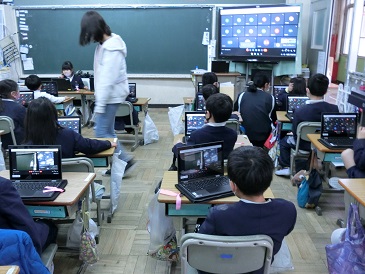 各学年が、いろいろと授業の中でクロムブックを活用しています。今日は1年生がオンライン授業に向けて、もう一度クロムブックから「クラスルーム」に入り、「ミート」につなぐことができるのか、復習をしました。「みんなの顔が見える!」と、歓声があがっていました。