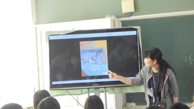 教室に行くと、テレビモニターを見ながら説明を受けていました。絵を見ながら自分の想像を加えて描くようです。どんな絵が完成するのかな。楽しみです。