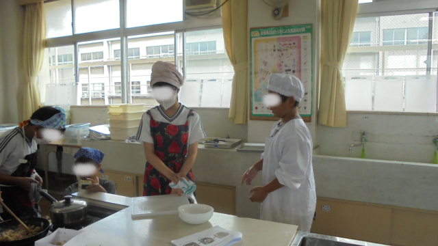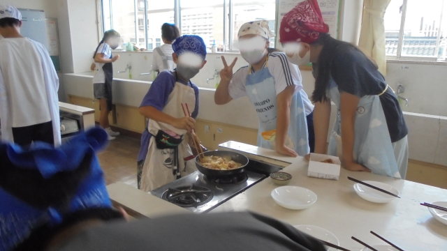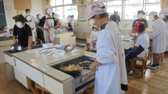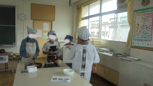 6年生の調理実習の様子です。みんなで協力して楽しく調理していました。ベーコンと玉ねぎ、ジャガイモの炒め物です。少しだけ味見させてもらいました。美味しかったです(#^^#)