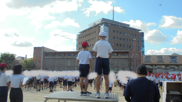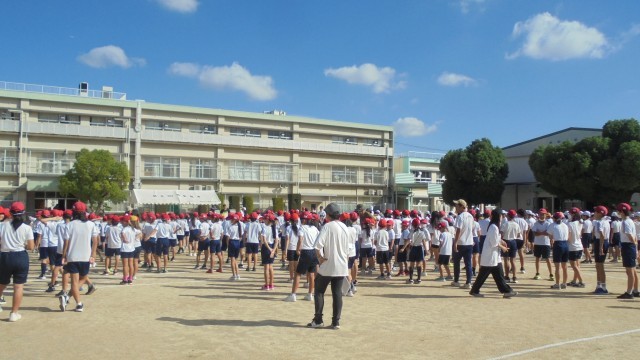昨日の大雨とうって変わって、晴天の朝です。今日は、運動会の全体練習が1時間目にありました。高学年の係の子どもたちが、前でラジオ体操や演技中の注意や校歌の指揮を行いました。また、応援団の団長や騎手が選手宣誓の練習もしました。校歌を歌うときに、団長さんが1年生の横にたって、一人でも大きな声で校歌を歌っていました。堂々と歌う姿やしっかりとマイクの前で注意事項を伝えたり、指揮を振る姿にさすが高学年だなと誇らしく思いました。本番もよろしくお願いします!!
