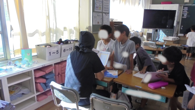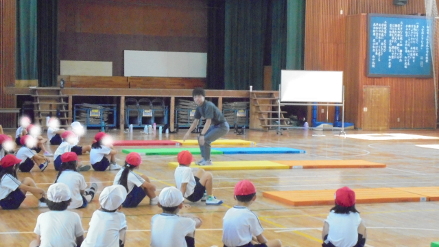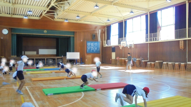 2年生の算数では、なんと忍者が二人。かけ算をしっかり覚えているか確かめに来ています。今日は、くのいちも一緒に二人でかけ算チェックをしていました。子どもたちは、覚えた九九を唱えていました。体育では、ウサギ跳びと称してマットの上をピョンピョン。どちらのクラスも先生のお話しをしっかりと聞いて楽しそうな表情で授業に参加しています。先生方の工夫が生きています。大切なことですね。