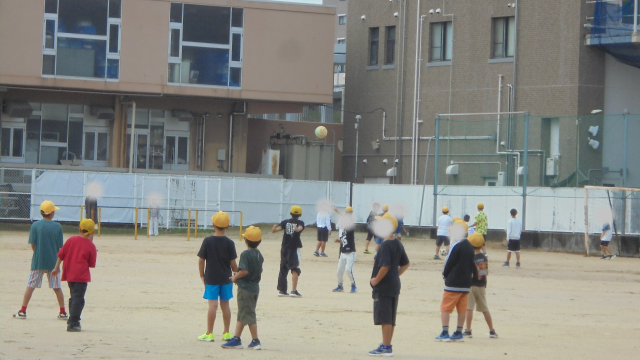 運動場は、少しぬかるんでいましたが、元気に遊んでいます。月曜日の朝の様子です。