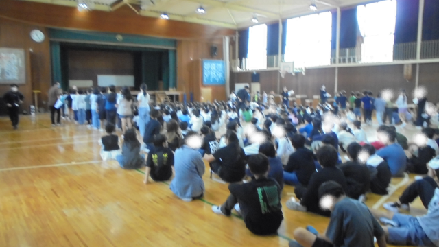 3時間目にみんなで訓練をしました。子どもたちも真剣に訓練ができました。万が一の時に、先生達も子どもたちも身を守るためにどう動く必要があるのか、人まかせにせず、自分で回りの状況をしっかり把握して、行動できる北っ子であってほしいと思います。
