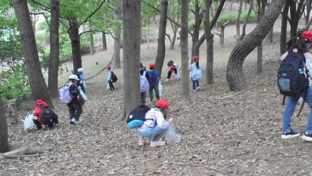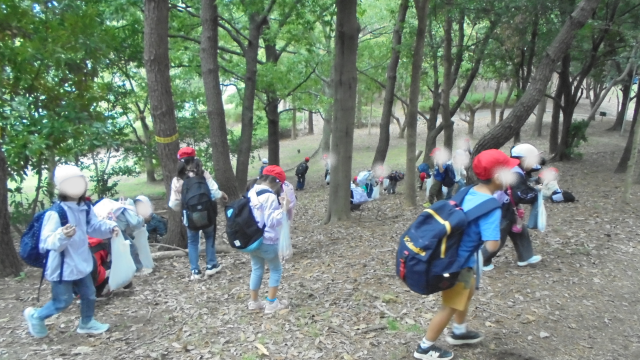 松ぼっくりは見つかったかな?枝をにつけてくる子どももいます。「枝は・・・目をついたら危ないからおいて置こうか。」と先生から言われました。「は~い!!」と先生の注意をきちんと聞いて枝をそっと置いていました。素敵な場面でした。