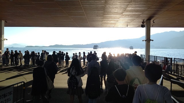 今からフェリーに乗って宮島に渡ります。