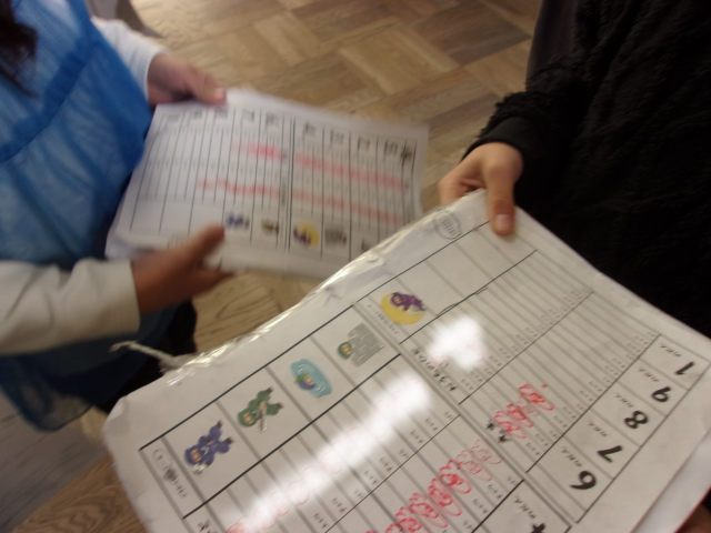 2年生の様子です。かけ算の暗算ができたらサインをしてもらえるそうです。がんばってね。