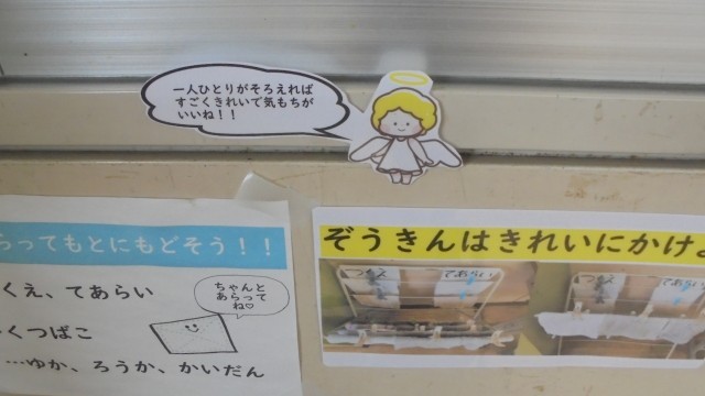 教室にエンジェルがいっぱいいました!!教室をきれいにつかうために心がけてもらおうと担任の先生の工夫です。かわいいエンジェルがいっぱいでした。教室も整理整頓できています。エンジェルの力は偉大かも(#^^#)