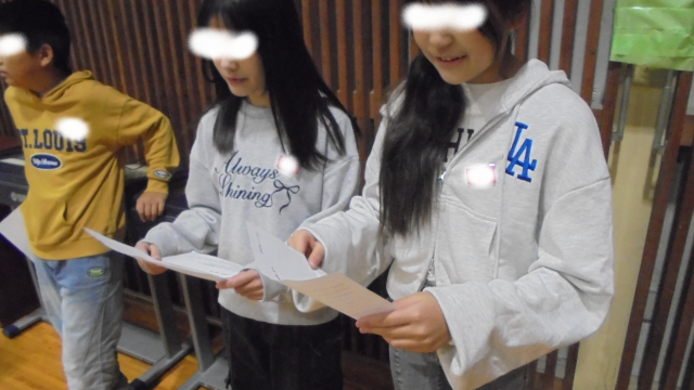 今日は、木曜日です。児童朝会があります。ふと見ると、児童朝会で発表する予定の図書委員の子どもたちが、一生懸命に読む練習をしていました。みんなの前で発表することは緊張しますね。がんばってね!!
