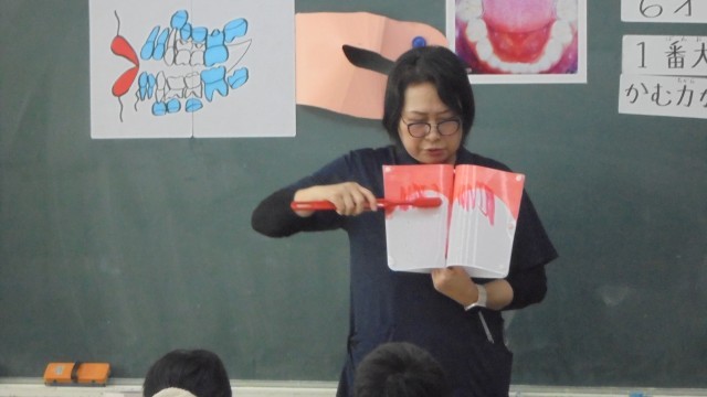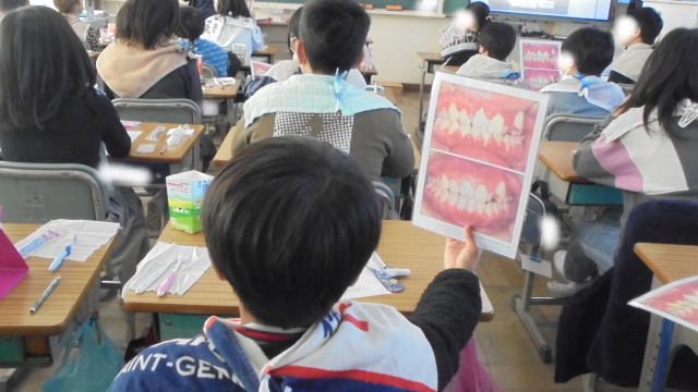 昨日、2年生と5年生で詩か衛生指導がありました。学校医の歯科医の先生や歯科衛生士さんが歯磨きの仕方など教えていただきました。