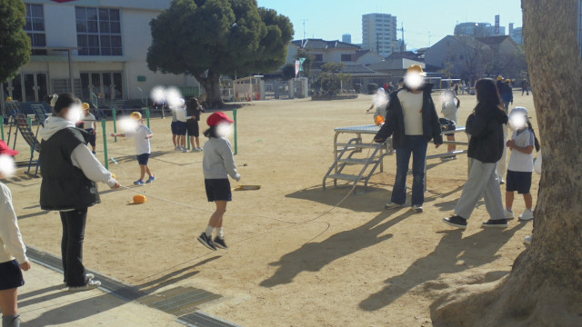 12月とは思えない温かさです。子どもたちは、20分休みに元気に運動場で遊んでいます。ふとみると、6年生5年生と低学年のお友だちが一緒に大繩をしています。まわすよ~とびや~と優しい声をかけてくれいます。