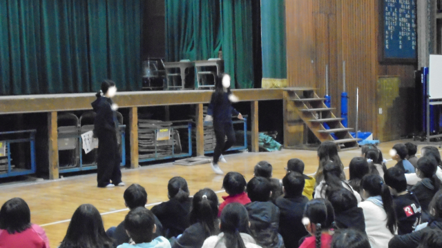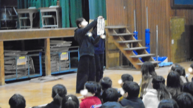 児童委員会からは、1月の生活目標について、わかりやすく動きや難縄を使ってわかりやすく伝えてくれていました。