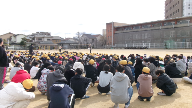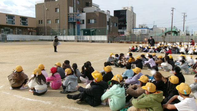 今日は、20分休み~3時間目にかけて避難訓練を実施しました。