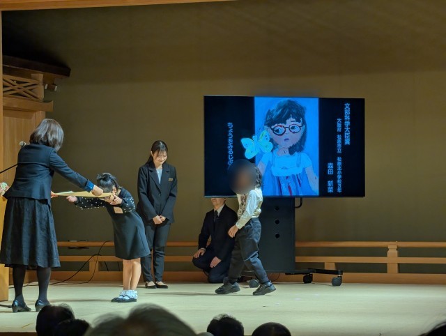 今日は、2月1日(日)です。静岡県 熱海市にあるMOA美術館 児童作品展 表彰式に行って来ました。なんと、本校の3年生の児童が約17万点の絵画、書写の作品の中から、文部科学大臣賞という賞を受賞しました。快挙です。MOA美術館の能楽堂で表彰式がありました。たくさんの人が見つめる中、立派に賞を受け取っていました。おめでとうございます\(^o^)/