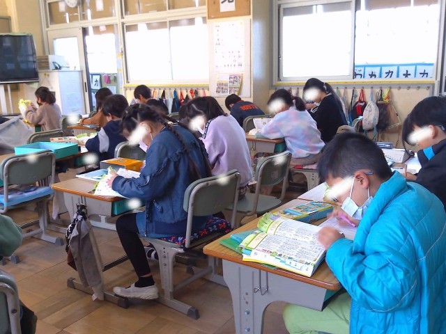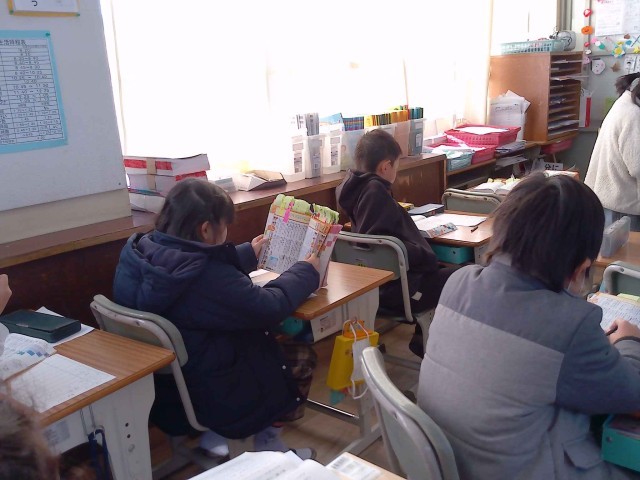 国語の「三年とうげ」で難しい言葉の意味を調べています。集中しています。