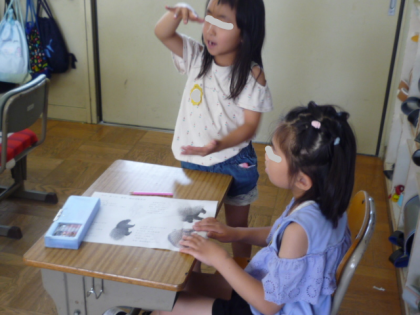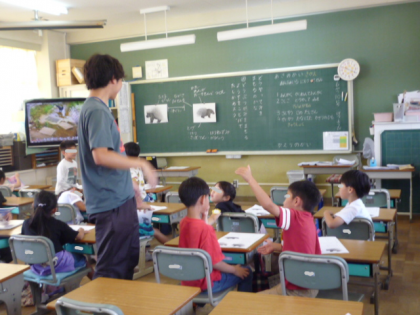 実習生が授業にチャレンジ。 動物は、どうやって身を守っているのかな?子どもたちは、自分でまず考えました。その後は、友だちと自分の考えを伝えあっていました。伝えるのって難しいですね。がんばってね。