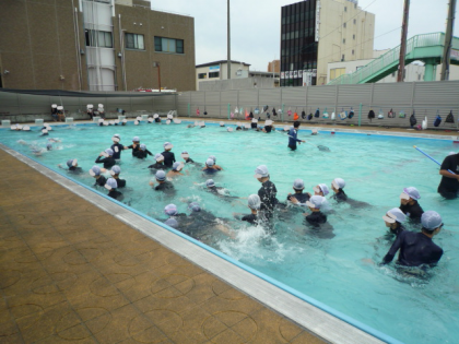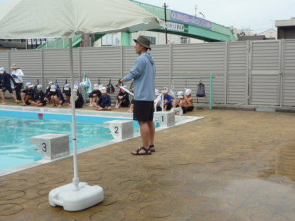 トップバッターは、6年生です。安全に気をつけてプール学習をするために、話を聞いていない場合は、厳しい注意が飛びかいます。しっかり先生の話を聞いて楽しく安全にプール学習をしていきましょう。