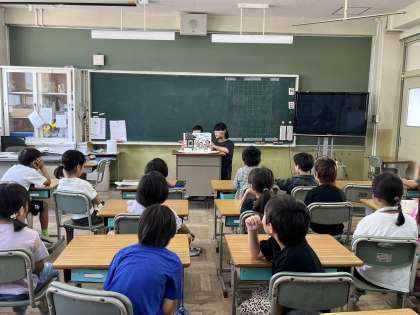 朝の読書タイムに、図書部の5・6年生が1・2年生の教室に来て、