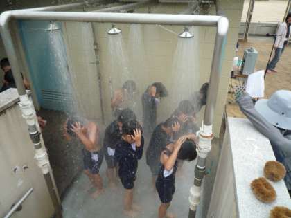 どの子も、しっかり洗っています。