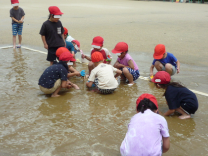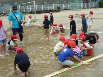雨も上がり、砂場も見事なコンディションになりました。1年生のどろんこ遊びです。みんな笑顔で楽しんでいます。会話を聞いていると保育園の時やったなぁ、幼稚園のときもやったなぁ。と懐かしんでいます。1年生が懐かしんでいるってかわいい(#^^#)
