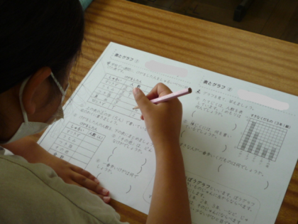ぼうグラフの学習です。まとめをノートに書いて確認した後は、プリントで練習です。