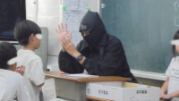5時間目に2年生教室を見に行きました。なんと黒服の忍者が・・・。「校長先生~忍者...