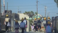 応援合戦の練習です。応援団の団員のお兄さん、お姉さんの掛け声に合わせて、大きな声で声援する練習をしました。騎手が前を通る時にはウェーブで盛り上げます。