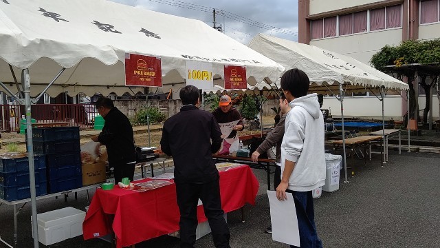 四中フェスタの準備をしています。朝からPTAの担当の皆さんやおやじの会の皆さんが、テントを張ったり、道具を出したりと準備を進めています。雨もあがって良かったです。