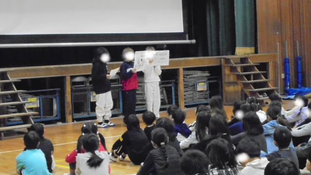 児童委員会の子どもたちが下足室の靴をきれいにそろえるようにと呼びかけました。少しずつ、靴をそろえようとする子どもが増えてきています。きちんとそろえてみんなが気持ちよく下足室をつかえるといいです。